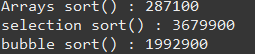 package ex0712; import java.util.Arrays; public class Ex08_sortTime { public static void main(String[] args) { // 정렬 시간 비교 int []a = new int[1000]; int []b = new int[1000]; int []c = new int[1000]; int n, t; long start, end; for(int i=0; i<a.length; i++) { n = (int)(Math.random()*1000)+1; a[i] = n; b[i] = n; c[i] = n; } //System.out.println("source : " + Arrays.toString(a)); // Arrays.sort()를 이용한 정렬 start = System.nanoTime(); //현재 컴퓨터 시간을 nano time 으로 반환 Arrays.sort(a); end = System.nanoTime(); System.out.println("Arrays sort() : " + (end-start)); //System.out.println("sort : " + Arrays.toString(a)); //selection sort start = System.nanoTime(); for(int i=0; i<b.length-1; i++) { for(int j=i+1; j<b.length; j++) { if(b[i] > b[j]) { t=b[i]; b[i]=b[j]; b[j]=t; } } } end = System.nanoTime(); System.out.println("selection sort() : " + (end-start)); //bubble sort /* int pass=1; boolean flag; start = System.nanoTime(); do { flag = false; for(int i=0; i<c.length-pass; i++) { if(c[i] > c[i+1]) { t = c[i]; c[i]=c[i+1]; c[i+1]=t; flag = true; } } pass++; }while(flag); end = System.nanoTime(); System.out.println("bubble sort() : " + (end-start)); */ //향상된 버블 boolean flag=true; start = System.nanoTime(); for(int i=1; flag; i++) { flag = false; for(int j=0; j<c.length-i; j++) { if(c[j] > c[j+1]) { t = c[j]; c[j]=c[j+1]; c[j+1]=t; flag = true; } } } end = System.nanoTime(); System.out.println("bubble sort() : " + (end-start)); } }