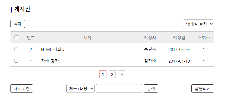 게시판 기능 중 일부인 체크박스 체크 기능하고 / 체크박스 선택 유무에 따라 삭제 메세지 기능만 있음.