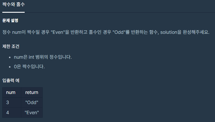 class Solution { public String solution(int num) { return num%2==0 ? "Even" : "Odd"; } }