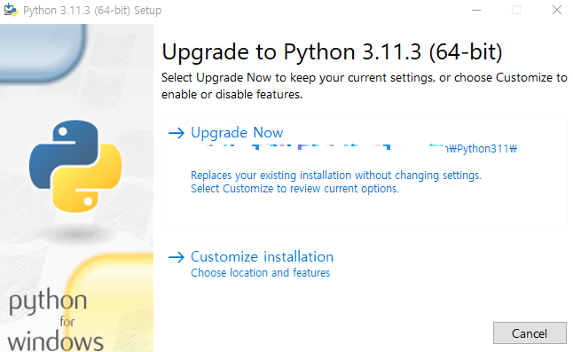 윈도우에서 파이썬 업그레이드 방법은 따로 없다.