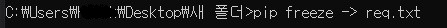 도스창 명령어 pip freeze -> req.txt주의할 점 : C드라이브 같은곳에 명령어를 치면 권한 없다고 나올 수 있음.