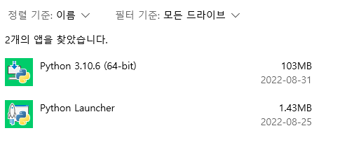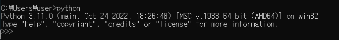 그리고 파이썬이 정상적으로 설치 되었는지 체크