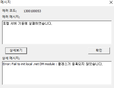 에러 : Error: Fail to init local .net DM module : 클래스가 등록되지 않았습니다. 1300100053