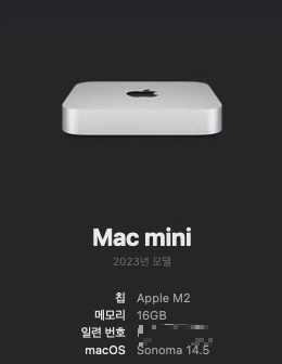 내가 선택한 맥미니 스펙은 M2칩 메모리 16기가 용량은 500기가대로 했다.