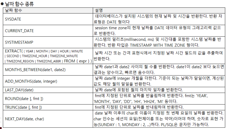 SELECT SYSDATE, TO_CHAR(SYSDATE, 'YYYY"년" MM"월" DD"일"') FROM dual;SYSDATE는 날짜형식인데 이걸 오른쪽에 형식으로 문자 변환을 해준다.
