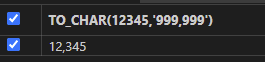 SELECT TO_CHAR(12345, '999,999') FROM dual;숫자 12345를 문자로 변환 하는데 형태는 3자리수 마다 콤마를 찍는다.