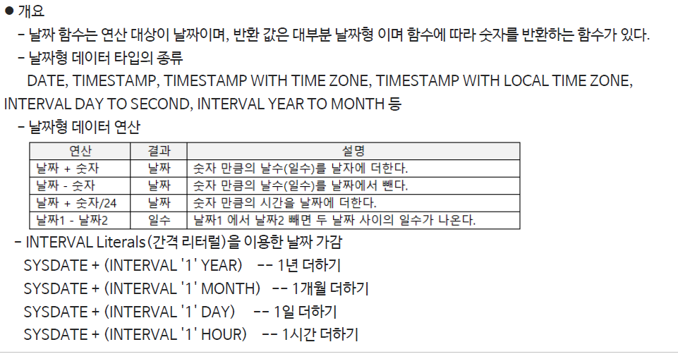 SELECT SYSDATE + ( INTERVAL '1' YEAR ) FROM dual;위 소스는 현재 시간에 1년을 더한 결과를 보여준다.