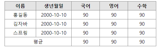 - table 태그 = 말 그대로 테이블 표를 만드는 태그