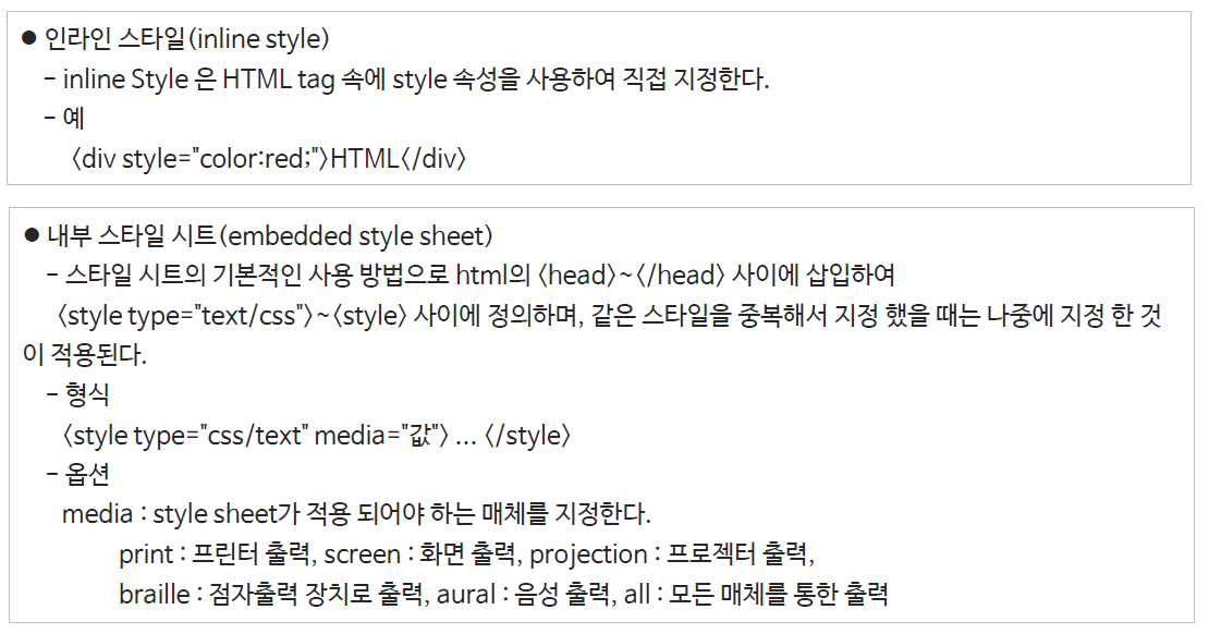 - CSS를 주는 방식은 크게 3가지가 있다.