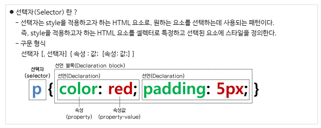 1. 태그 선택자 => 말 그대로 태그에 속성을 주는 것 ex)p {}, label {}