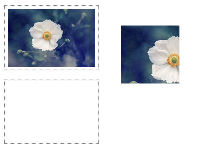 <!DOCTYPE html> <html> <head> <meta charset="UTF-8"> <title>Insert title here</title> <style type="text/css"> .box { width: 300px; height: 200px; padding: 10px; margin: 30px; border: 2px dotted gray; } .img { position: absolute; top:80px; left: 420px; clip: rect(20px, 220px, 220px, 20px); /* top, right, bottom, left */ } </style> </head> <body> <div class="box"><img src="../img/img2.png" width="300" height="200"></div> <div class="box"><img src="../img/img2.png" class="img"></div> </body> </html>